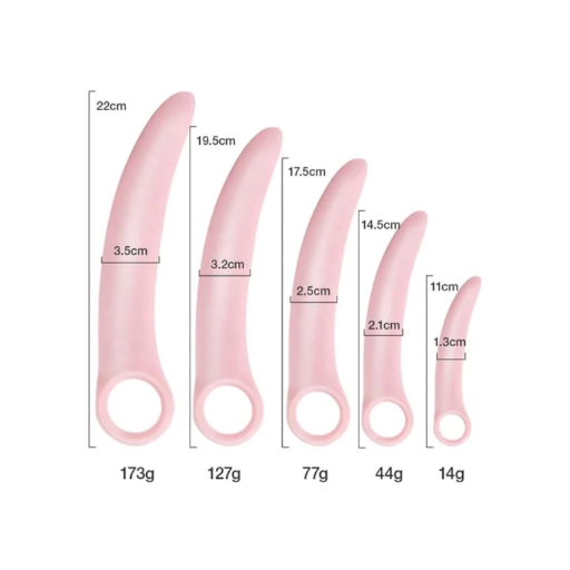 El elegante conjunto contiene 5 dilatadores, que varían en tamaño para la dilatación gradual.
